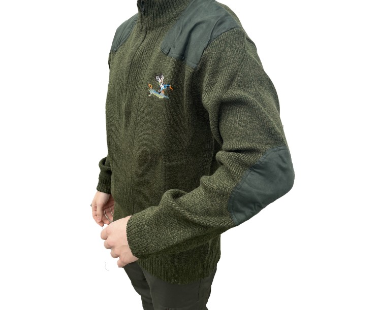 Svetr od prémiové francouzské lovecké značky Percussion v zeleném provedení disponuje zesílenými nášivkami na loktech a ramenou pro dlouhou životnost. Elastické rukávy a pas zajištují pohodlné nošení. Tento svetr je vybaven zipem u krku pro pohodlné oblékání. Na prsou se nachází elegantní nášivka se vzorem. Jedná se o pohodlný všestranný svetr vhodný na celoroční použití.