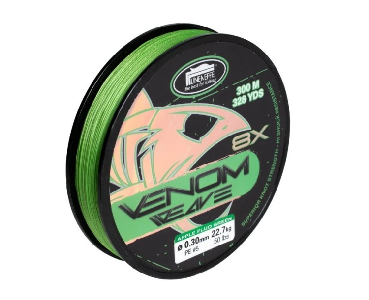 Kvalitní pletená šňůra Lineaeffe Venom wave 8X vyniká díky hustému pletení 8 vláken vysokou nosnostní a oděruvzdorností. Kulatý profil šňůry zajišťuje hladký a minimálně nasákavý povrch a tak lze dosáhnout velmi dalekých a přesných hodů. Limetkově zelená barva zajišťuje dobrou viditelnost a zlepšuje přesnost identifikace jemných záběrů a zlepšuje přesnost náhozů. Díky nulové průtažnosti se veškeré informace od nástrahy okamžitě přenášejí do špičky pruty a ruky rybáře a tak lze ihned reagovat i na ty nejjemnější záběry.