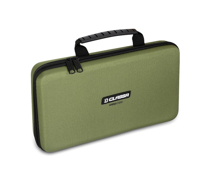 Série CLASSA zahrnuje kvalitní produkty za skvělou cenu a výjimkou není ani univerzální tvrzené pouzdro na rybářské příslušenství HardCASE.Je vyrobeno z odolného materiálu, potaženého nenápadnou tmavě zelenou tkaninou, takže taška si udržuje svůj tvar a v porovnání s běžnou látkovou taškou lépe odolává vnějším vlivům a nešetrnému zacházení.