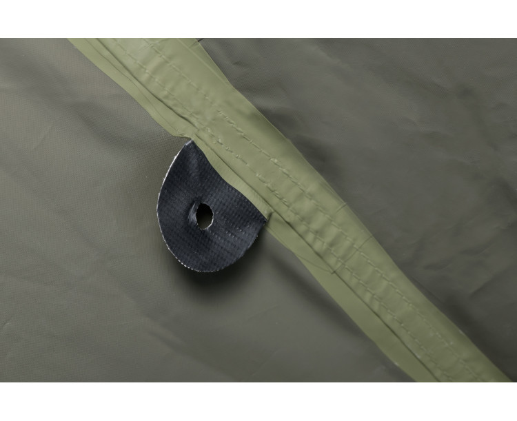 Přístřešek Mivardi Base Camp Xtreme XXL je nekompromisní řešení pro pobyt u vody za všech okolností. Jeho základem je potah z nového materiálu M-TEX415 s unikátním rozpraskaným designem. Tento materiál nabízí legendární pevnost a odolnost bivakových materiálů Mivardi, avšak s výrazně zlepšeným vodním sloupcem 15 000 mm a sníženou hmotností. Snížená hmotnost je pro použití na takto velkém přístřešku mimořádně důležitá. Všechny švy jsou zajištěny technologií FST (Flexible Seam Taping). Široké, flexibilní pásky výborně přilnou k plášti a spolehlivě utěsňují všechny švy i při používání přístřešku ve velmi nízkých či vysokých teplotách. Konstrukce a technické řešení všech detailů jsou vyladěny do posledního detailu. Přístřešek je i při své nadstandardní velikosti snadno a rychle postavitelný. Nabízí však mnohem více než jen velký prostor, dveře a okna. Jeho základem je mimořádně stabilní rám se zdvojenými stojnami, propojenými rozpěrnými tyčkami s pevnými klipy na obou koncích. Ty výrazně zpevňují konstrukci a průhyb stojen. Dvě z těchto rozpěrných tyček jsou osazeny praktickými držáky prutů na suchý zip. Všechny hlavní části rámu jsou teleskopické a jsou vybaveny spolehlivým systémem pro snadnou fixaci výsuvu. Teleskopické části rámu rovněž umožňují dosažení kompaktní přepravní velikosti a zajišťují i rychlé a pohodlné rozložení / složení přístřešku. V extrémních podmínkách je možné ještě zvýšit stabilitu přístřešku použitím čtyř kotvících šňůr. Sestavení i složení přístřešku snadno zvládne jedna osoba. Přední stěna je tvořena otevíratelným vchodovým panelem s obrovským oknem, osazeným moskytiérou, transparentním PVC a nylonovým pláštěm. Masivní zipy jsou osazeny ergonomicky tvarovanými táhly pro rychlé uchopení jedním či dvěma prsty. Táhla jsou vyrobena z fotoluminiscenčního materiálu a po nasvícení ve tmě světélkují. Přední panel typu letter box lze otevřít po stranách a klasicky srolovat nahoru nebo jej částečně rozepnout a otevírat postupně shora dolů. V přední části přístřešku se nachází velká markýza s vlastní sklolaminátovou konstrukcí. Při rozložení je podepřena dvěma stojnami a zajištěna kotvícími lanky. Markýzu je možné kompletně sklopit podél přední stěny přístřešku a není ji třeba vždy rozebírat. Speciálně řešené napojení markýzy na přístřešek účinně brání hromadění vody na střeše i při prudkém dešti. Zadní stěna i boční stěny přístřešku jsou vybaveny velkými otevíratelnými okny s nylonovým pláštěm a moskytiérou s funkcí mikroventlilace. Všechny tři tyto panely typu letter box je rovněž možné částečně otevřít či úplně odepnout. Namísto těchto stěn můžete k přístřešku připnout unikátní propojovací manžety Mivardi Bivvy Connection Kit, dostupné samostatně. Ty slouží ke snadnému napojení jednoho, dvou nebo tří téměř libovolně velkých bivaků či brolly k přístřešeku Base Camp Xtreme XXL. Připojovací manžeta dokonale obepíná připojený bivak a chrání toto napojení před deštěm i větrem. Dalším doplňkovým příslušenstvím je sada čtyř vnitřních závěsných organizérů nebo vysoce odolná podlaha. Přístřešek je standardně dodáván v dostatečně velké transportní tašce pro snadné uložení sbaleného přístřešku. Tato taška z nylonu 600D je nepromokavá a omyvatelná.