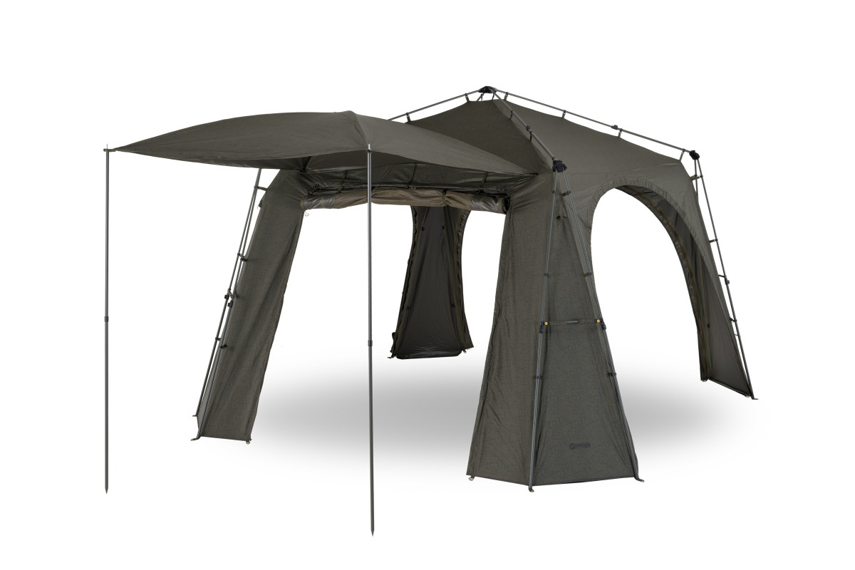- K přístřešku Base Camp XTREME XXL lze pomocí Bivvy Connection Kitu (volitelného příslušenství) připojit jakýkoliv bivak nebo brolly na trhu, a to až tři kusy.
