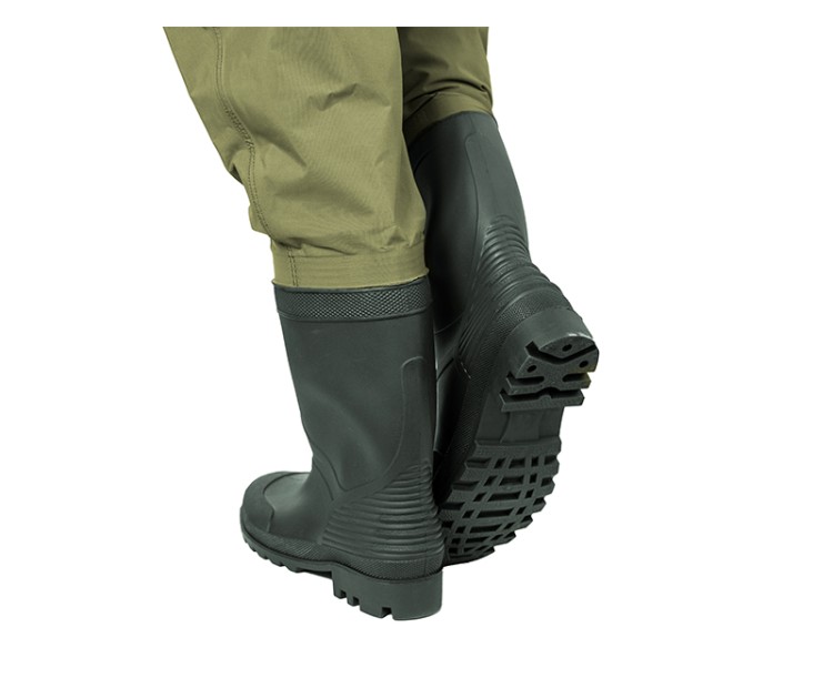 Holinky vyrobené z vysoce odolného materiálu Plavitex (PVC/polyester s gramáží 700g/m). Jsou osazeny kvalitní botou a na kolenou ještě vystuženy. Velikost 45