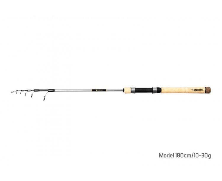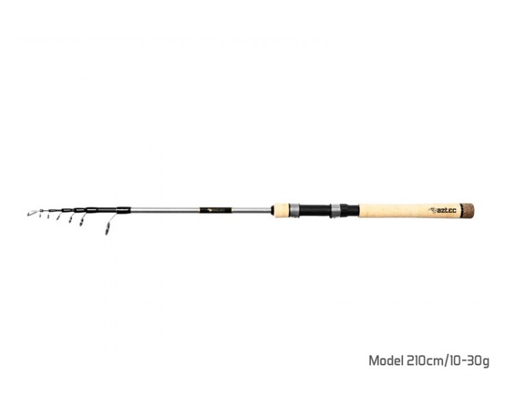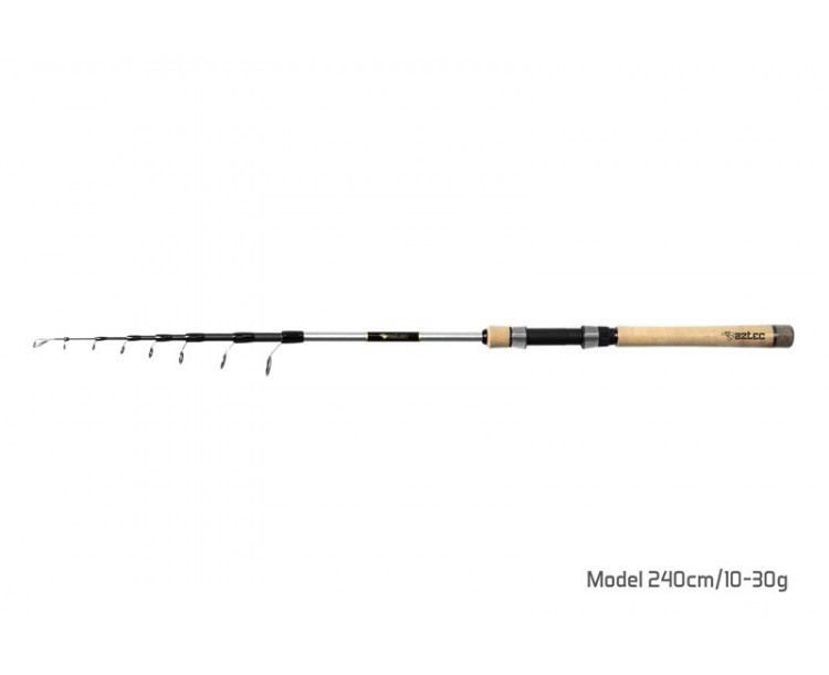 Teleskopický prut už dávno neznamená automaticky nižší kvalitu. To dokazuje řada teleskopů AZTEC, která v sobě snoubí kompaktní rozměry při zachované kvalitě komponentů. Využili jsme kvalitní 24T karbon, na kterém je celý prut postaven, použili velmi dobrá očka, pěkný a odolný korek.
