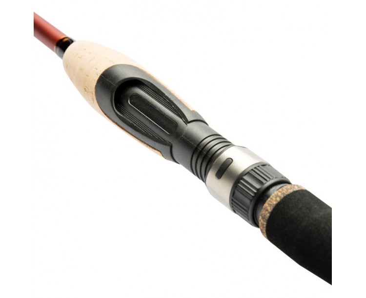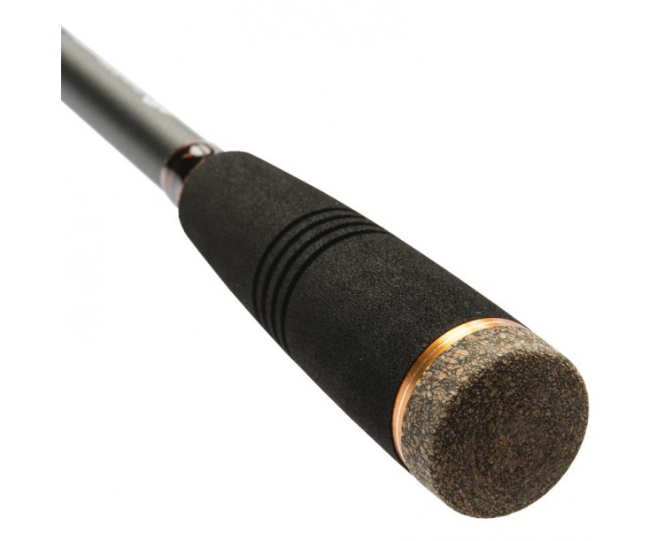 Prut má matnou černou povrchovou úpravu a je určen pro lov s lehčími nástrahami. Prut je osazen kvalitními jedno nožičkovými SIC očky, ergonomickým sedlem navijáku a rukojeť kombinuje kvalitní přírodní korek s EVA materiálem. Rukojeť má ideální délku 43cm, díky níž nedochází k velké námaze předloktí při vláčení. Kovové očko pro zachycení háčku.
