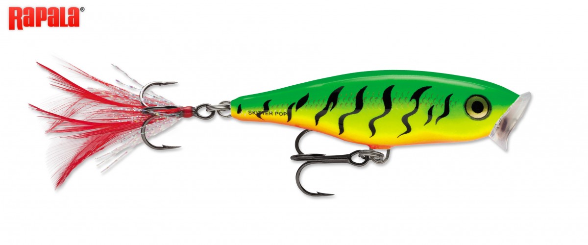 Skitter Pop je balzový wobler určený pro povrchový lov. Nástraha díky tvaru hlavy vytváří ve vodě shluk bublin provázený specifickým zvukem. Velmi účinné v místech nad vodním porostem, či v případě, že ryby loví u hladiny.