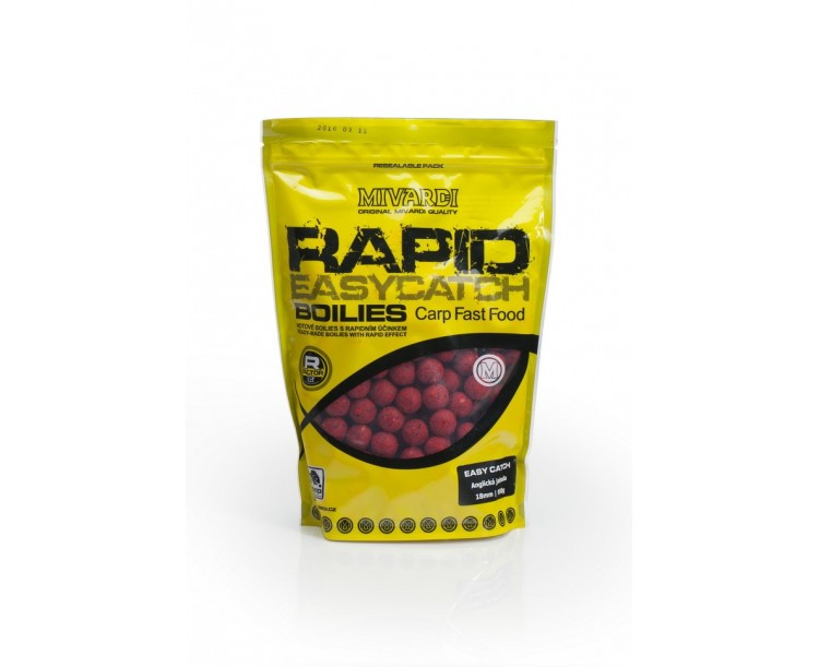 Úplně nová řada boilies Rapid. Tyto rychle působící nástrahy fungují i při krátkých, jednodenních vycházkách. Stejně tak je můžete požít v situacích, kdy ryby nejsou příliš aktivní. Složení mixu a vysoký podíl extrudovaných složek podporuje práci ve studené vodě. Kvalitní esence a výrazné barvy zajišťují vysokou atraktivitu i bez použití boosterů. Optimální konzistence a použití R-FACTORu umožňují snadné nastražení (propíchnutí) a zároveň velkou výdrž.