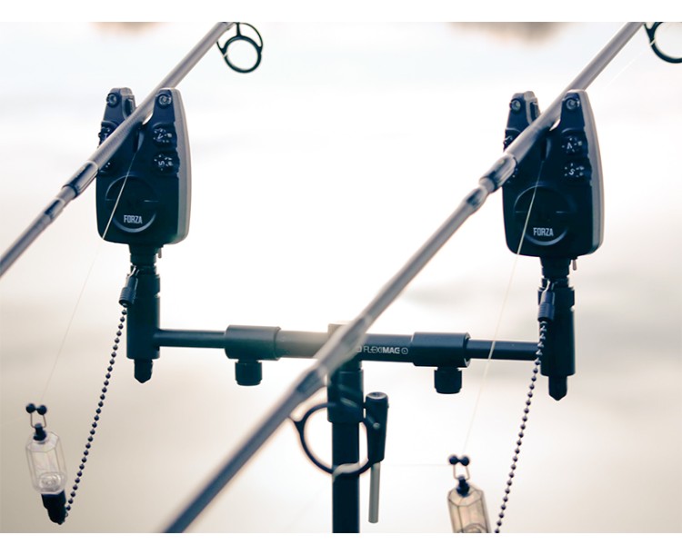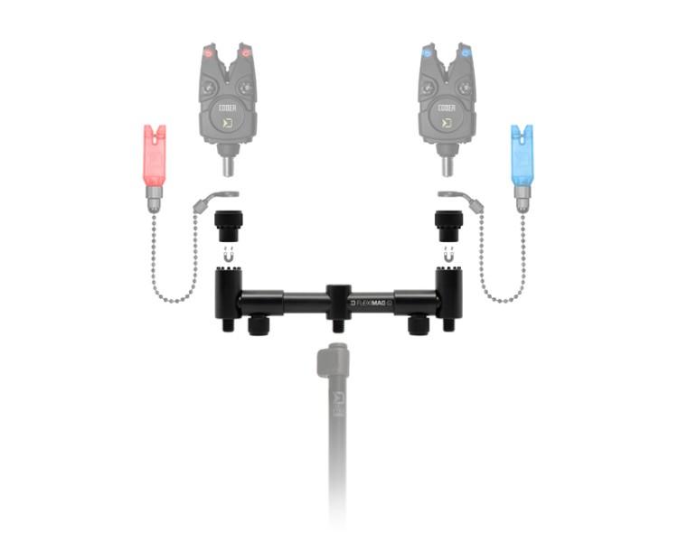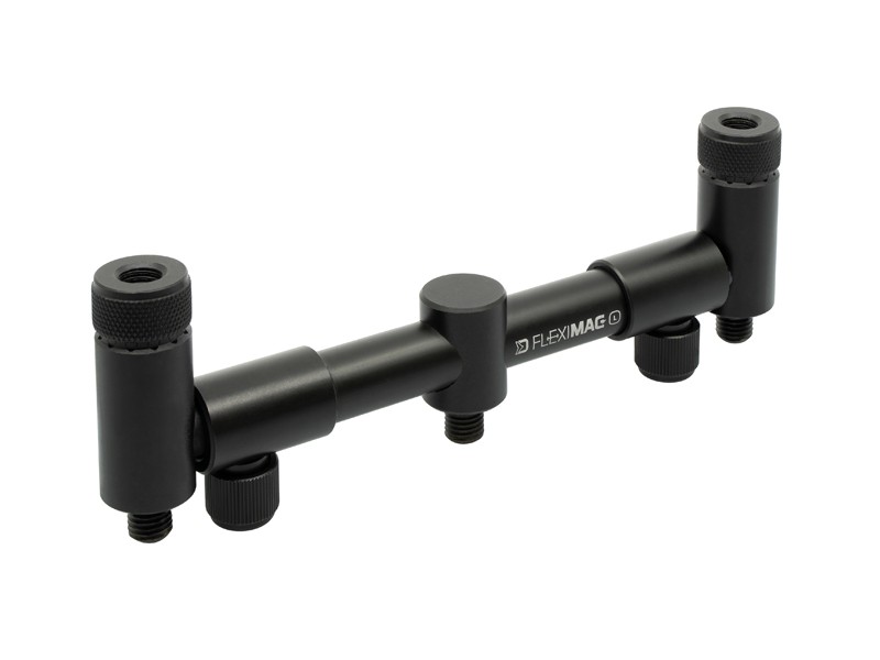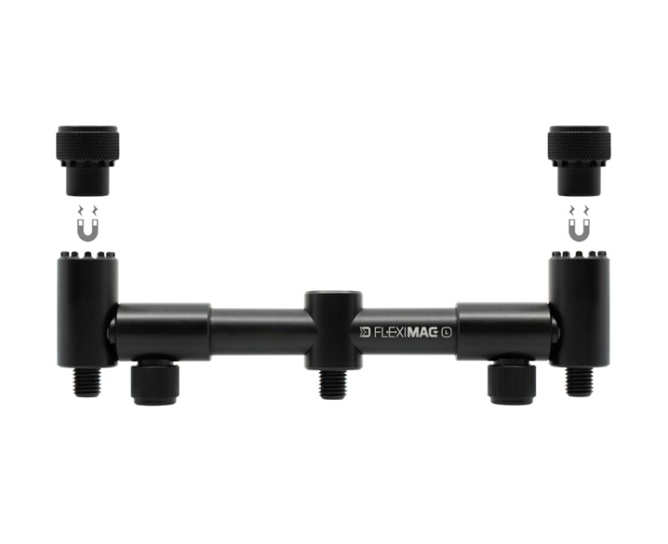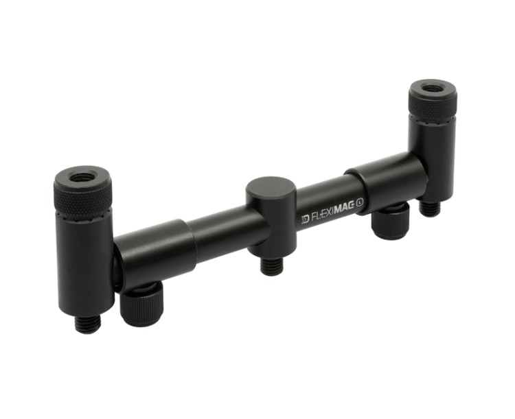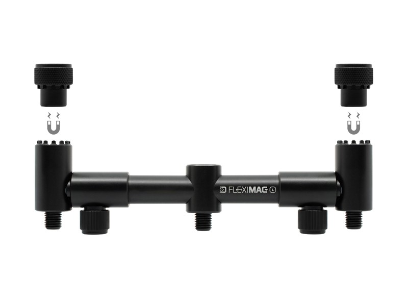 Hrazda na pruty s magnetickými rychlospojkami a univerzálním závitem, kompatibilní s většinou vidliček a bouřkových tyčí dostupných na trhu. Výhodou rychlospojky je, že si můžete signalizátory a zadní držáky ponechat zašroubované v závitu a v případě potřeby jednoduše vytáhnout z hrazdy, nebo zasunout zpět při zahájení lovu. Jednotlivá ramena jsou výsuvná, a tedy je možné si šířku hrazdy přizpůsobit podle svých potřeb podle velikosti navijáků. V oblibě je také roztažení přední hrazdy a vytvoření vějířového rozložení prutů, při kterém špičky směřují mírně od sebe.Ramena jsou ze spodní části seříznuta do roviny, takže po utažení pojistných šroubů perfektně drží na místě a neprotáčejí se. FlexiMAG BUZZ je vyrobena z pevného hliníku, potaženého odolnou černou práškovou barvou. Dodáváme ji ve dvou velikostech, konkrétně kratší L určená na dva a delší XL na tři pruty.