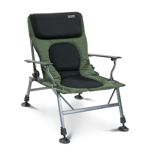 Velké a pohodlné rybářské křeslo, které je silně polstrované a je vybaveno loketními opěrkami. Oblast hlavy a ledvin je polstrována extra silně. Má hliníkové, výškově nastavitelné nohy zakončené koncovkami proti zaboření. Křeslo je vyrobeno z600D polyesteru, který odpuzuje vodu a nečistoty. Součástí dodávky je i praktická odkládací plocha (stoleček) o rozměrech 18 x 40 cm, který lze přišroubovat na bok. Pohodlný sedák a extra vysoké opěradlo zaručuje naprostý komfort. Nosnost je 170kg.materiál: zesílený rám, hliníkové nohy a vodu odpuzující 600 D polyesterhliníkové, výškově nastavitelné nohy zakončené koncovkami proti zabořeníextra vysoké opěradlo: 53 x 85 cmvýškově nastavitelné sedadlo: 35-55cmrozměry sedáku: cca 54 x 53 cmsilně polstrované oblasti hlavy a oblasti ledvinneoprenové potahy loketní opěrkyodkládací plocha: 18 x 40 cmpřepravní rozměry: 100 x 67 x 15 cmhmotnost: 7,2 kgnosnost: 170kg