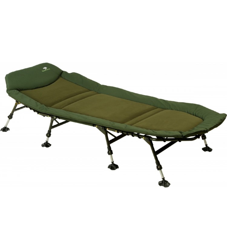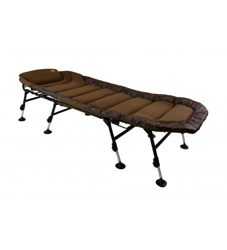 Maximálně pohodlné, osminohé lehátko, díky kterému se stane pobyt u vody vždy dokonalým a zaslouženým odpočinkem.Základ lehátka tvoří velmi stabilní konstrukce, která se kromě vysoké pevnosti vyznačuje nízkou hmotností a odolností vůči mechanickému poškození a vnějším vlivům. Na konstrukci je osazena silně polstrovaná matrace s efektním prošíváním, které dodává tomuto lehátku punc originality. Matrace je na povrchu potažena fleecem, čímž je velmi příjemná na dotek a výborně zahřeje během chladných dnů. Kromě toho je matrace po obvodu opatřena odolnou 600D látkou v jedinečném C2G designu. Pro maximální pohodlí je ve vrchní hlavové části extra polstrovaný fleecový panel tmavě zelené barvy. Ve středové části je matrace ze spodu dodatečně vyztužená a lze nastavovat její tuhost pomocí pevného gumového provazu.Všech 8 nohou je vybaveno robustními, flexibilními patkami, což jim umožňuje přizpůsobit se nerovnostem terénu. Pár nohou pod hlavou je navíc opatřen zajišťovacím mechanismem, což usnadňuje rozložení lehátka a zároveň zabraňuje nechtěnému sklápění či posunu.Lehátko je vybaveno také dvěma popruhy s masivními klipy na bocích, které zabraňují samovolnému rozevírání a usnadňují tak jeho transport ve složeném stavu. Jako bonus dostanete v základu praktickou závěsnou kapsu, poskytující možnost uložení mobilního telefonu, příposlechu, či dalšího drobného příslušenství.Všechny tyto devizy, spolu s komfortní matrací a jedinečným designem řadí EightLUX 8 mezi TOP produkty v kategorii rybářských lehátek. Technické parametry: Rozměry matrace: 205x80cm Výška postele: 30-40cm Fixovatelný kloub: ne Vyztužení středové části: ano Hmotnost: 10,5kg Přepravní rozměry:80x80x30cm