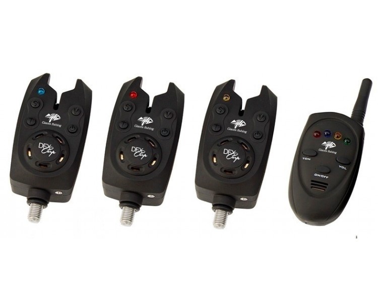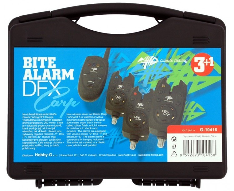 Nová bezdrátová sada hlásičů Giants Fishing DFX Carp je voděodolná s minimálním dosahem příjmu příposlechu 200 metrů.