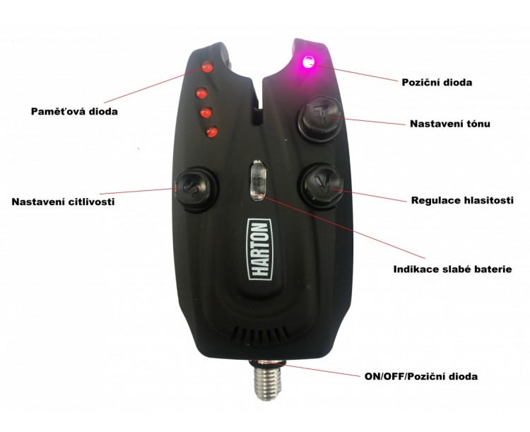 Sada signalizátorů s příposlechem HARTON Omega vás ohromí nejen funkcemi, ale i propracovaným designem, odolností a výdrží baterie. {VIDEOGALLERY|5} Aktuálně se jedná o nejlépe vybavenou sadu v hodnotě do dvou tisíc korun, která je momentálně na našem trhu. Sada je standardně nabízena jako 2+1 a 3+1 s možností dodatečného rozšíření až na 4+1. Mimo velmi kompaktní kastli, která všude perfektně lícuje, jsou hlasiče a přijímač ošetřeny povrchovou úpravou vytvářející pogumovaný efekt. Přenos signálu pomocí magnetů v kolečku a dokonale uzavřený obal vytvářejí maximální voděodolnost a zabraňují vniku vody i při těch největších průtržích. Další ochranný prvek, který však není vidět, je zalití celé elektronické desky silikonem, který zabraňuje kondenzaci vody a případnému zkratu. Samozřejmostí je možnost intalace tzv. rohů, které jasně vymezují polohu prutu a brání jeho nechtěnému pádu. Kde jsme udělali velký krok kupředu je noční přísvit, kdy si můžete rozsvítit záběrové kolečko v předem definované barvě (červená, zelená, modrá, žlutá). Nejen že je tento přísvit velmi praktický, ale zároveň hlásiče opravdu dobře vypadají. Harton Omega je zkátka absolutním vítězem v poměru cena/výkon. Parametry: Napájení 9V – jak signalizátor, tak hlásiče jsou napájeny 9V baterii Dosah - standartní a postačující dosah 150-200m na volném terénu Antikrádež – na hlásiči se nacházejí optické snímače, které po aktivaci (zvednutí prutu) vyšlou varovný signál jak na hlásiči, tak na signalizátoru. Funkce lze samozrejmě deaktivovat. Nastavení hlasitosti a tónu – 6 úrovní Vibrace – volba hlasitosti už je dnes samozřejmostí. My jdeme dál a náš příposlech obsahuje i funkci vibrace. Nočni režim – každý hlásič má poziční světlo v barvě diod, které lze manuálně aktivovat či deaktivovat Paměť – po záběru nám záběrová dioda bliká dalších 10s, nastavení hlasiče zůstáva stejné po opětovném zapnutí/vypnutí Záběr – klasický zaběr a tzv. "padák", kdy ryba jede k nám lze na signalizítoru rozpoznat jednak podle záběrové diody, tak i podle tónu. Rohy – nepostradatelná ochrana vašich prutů, které lze jednoduše namontovat nebo odmontovat díky závitu Gumové výstelky pod prut – prut neleží na tvrdém plastu jako u levných sad, ale na gumových výstelkách Indikace slabé baterie – na přijímači se zobrazí blikající dioda v levé části. Na signalizátoru začne problikávat záběrová dioda Připojení – 2,5mm jack na připojení swinger Magnet na příposlechu k uchycení na kovové konstrukce