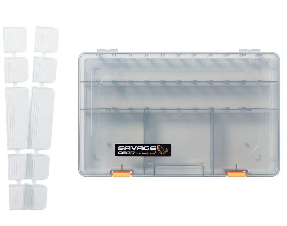 Praktické krabičky na střední a velké nástrahy a příslušenství vyrobené z pevného a odolného materiálu. Mají vodotěsná víčka, aby poskytovaly skvělou ochranu vašemu vybavení. • Průhledný kouřový PP materiál s UV ochranou • Vzor B: 5 pevných přihrádek + nastavitelné přepážky
