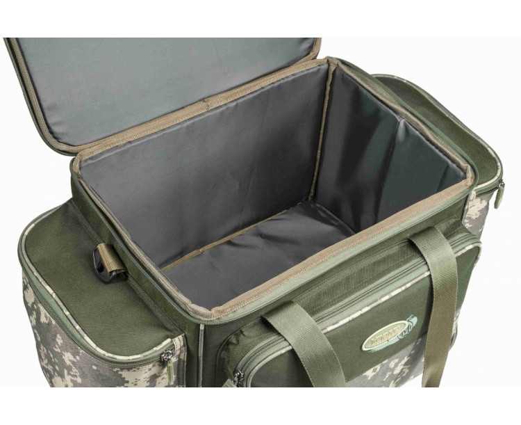 Precizně zpracovaná přepravní taška v atraktivním designu digitálního maskáče s prostornými bočními kapsami. Tvrzené víko slouží jako stolek na drobné příslušenství. Luxusní polstrovaný popruh umožňuje pohodlné nošení přes rameno.