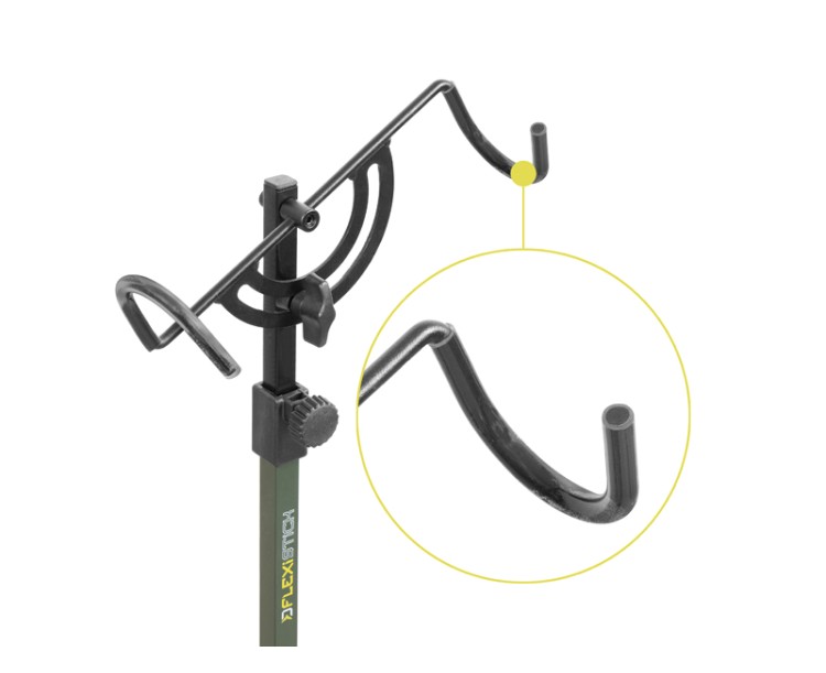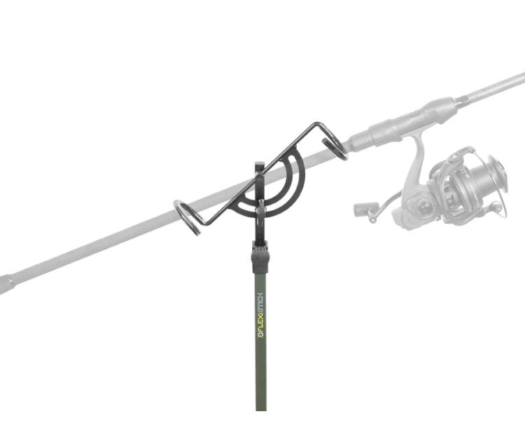 Univerzální teleskopický držák na prut, využitelný pro většinu rybolovných technik.Vrchní část držící prut je vyformována z hrubého a pevného drátu černé barvy, který je specificky zahnutý tak, aby do něj bylo možné zasunout jakýkoli rybářský prut. Přední i zadní zahnutí je navíc potaženo gumou, což zamezí posouvání a zabrání poškození prutu.
