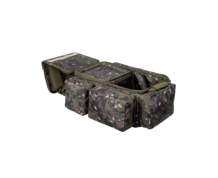Praktická taška vmaskovaném designu. Vodě odolný polyester zaručuje bezpečné uložení vašeho vybavení. Elegantní vzhled doplňují robustní, kvalitní zipy a extra silně polstrovaný ramenní popruh, díky kterému lze tašku pohodlně přenášet. Součástí tašky jsou dva organizéry na návazce, velký organizační box a 9 dóz na nástrahy.vnitřní rozměry: 40 x 38 x 35 cm3 boční kapsy (22 x 30 x 8 cm a 38 x 10 x 6 cm)2 x pouzdro na návazce9 x dóza na nástrahy1 x silně polstrovaný ramenní popruhzesílená, vodotěsná spodní částmateriál: 600D polyester