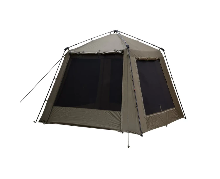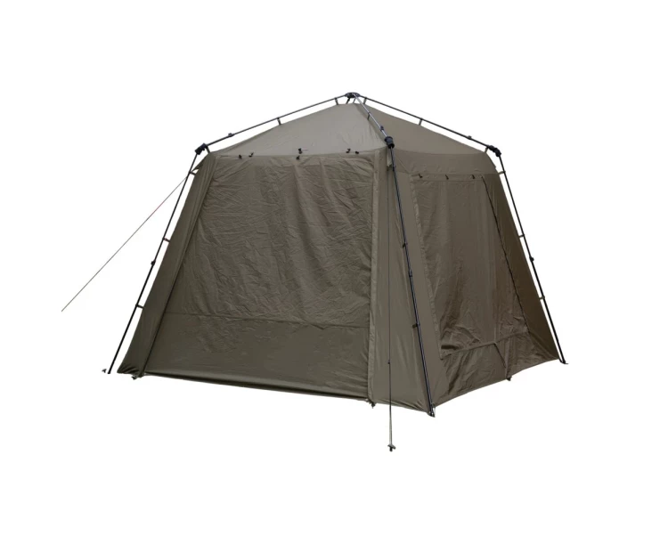 Multifunkční rybářský přístřešek Gazebo XL lze využít jako společenské centrum pro více rybářů, kuchařské zázemí nebo jako prostorný bivak. Nabízí dostatek prostoru pro každodenní nezbytné činnosti za jakéhokoliv počasí a navíc hromadu prostoru pro uložení vašeho dalšího rybářského vybavení. Hliníkové, teleskopické tyče Speedup poskytují robustní rám a umožňují, aby se přístřešek sbalil do kompaktní, pro jednu osobu zvládnutelnou velikost. Výška dveří byla posunuta co nejvýše, aby byla zajištěna maximální průchodnost.