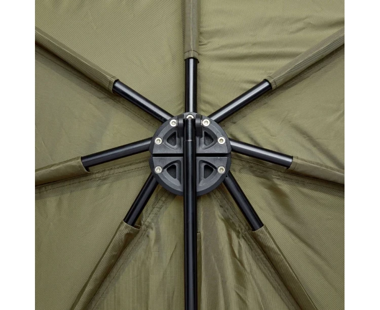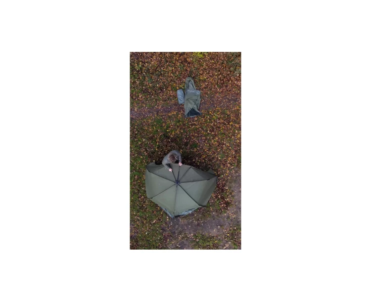 Rybářský deštník DUUM 250 Full Cover má revoluční a ojedinělou konstrukci. Krytý půdorys 2,5x2,5m je díky použití čtyř zesílených sklolaminátových ramen přísně čtvercový, což umožňuje stoprocentní využití vnitřního prostoru. S odlehčeným rámem se lépe manipuluje a ulehčuje stavbu celého deštníku. Kryt zipu je umístěný pod ramena. Při dešti tak voda plynule stéká, nehromadí se u švu a tím se minimalizuje možnost prosáknutí vody dovnitř. Na koncích ramen jsou už od výroby integrované klouby se závitem na teleskopické tyče. Při dokoupení čtyř tyčí (kód 5104100ES) lze deštník na ně postavit a odšroubovat středovou tyč. Vznikne tak uvnitř prostor pro volný pohyb. Parametry: Barva: Zelená Transportní délka: 160 cm Hmotnost: 5,1 kg Materiál: 210D šířka: 250 cm Výška: 140 cm