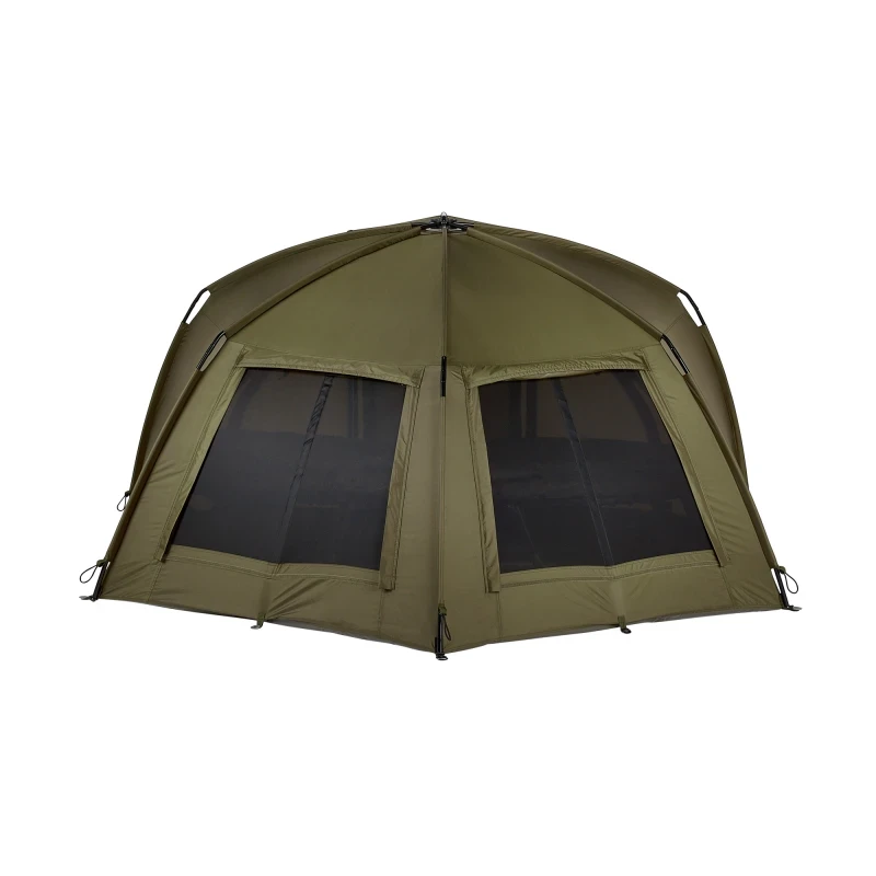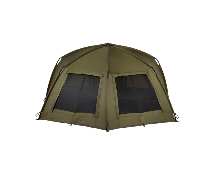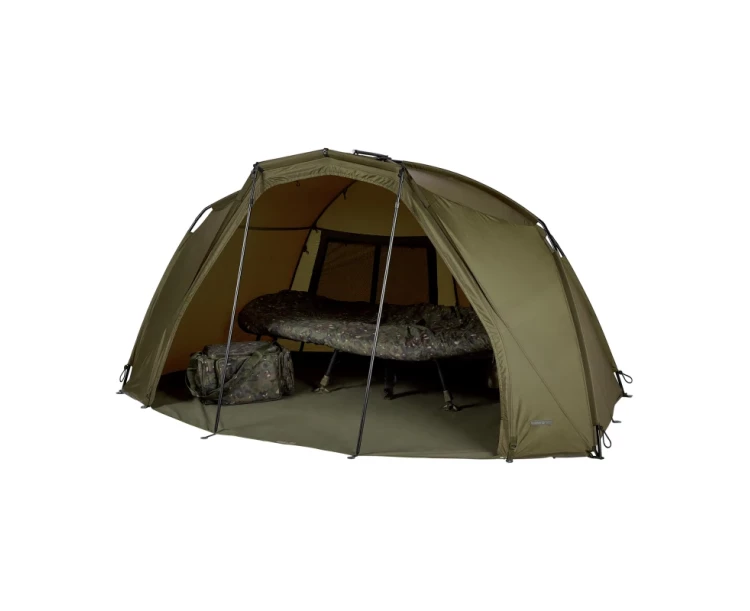 Velikost bivaku 100 poskytuje plochu, která se vejde na většinu rybářských stanovišť a zároveň nabízí dostatek prostoru pro velké lehátko a další vybavení. Dva velké zadní větrací otvory zajišťují proudění vzduchu, aby byl přístřešek v horkých dnech chladnější. Bivak je vyroben z pevné a voděodolné látky, součástí jsou suché zipy pro uchycení prutů a 2 bouřkové tyče pro větší stabilitu. Vlastnosti produktu revoluční, patentovaný design ultra pevný, snadno použitelný a rychle sestavitelný přístřešek rozpěrný GRP kompozitní blok – lehký, mimořádně pevný a odolný proti opotřebení neuvěřitelně skladný s minimální velikostí balení dvojité větrací otvory vzadu zvyšují proudění vzduchu dva popruhy pro pruty 2 bouřkové tyče zjednodušují stavění a zabraňují kroucení bivaku dodává se s přepravní taškou, podlážkou, napínacím popruhem a T-kolíky
