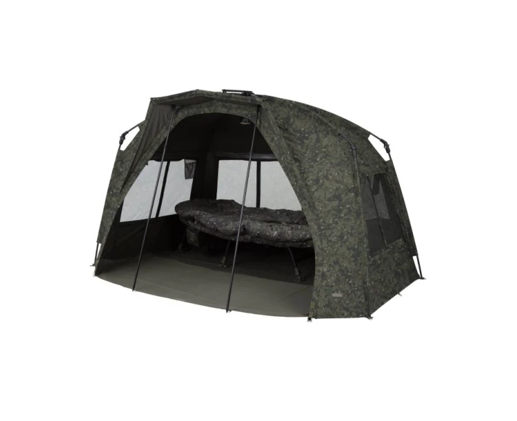 Nejrychleji postavitelný přístřešek Tempest nyní i v Camo verzi. Základem tohoto bivaku pro jednoho rybáře je proslulý rozpěrný blok, který umožňuje snadné a rychlé postavení přístřešku. Rychlost stavby byla ještě vylepšena kloubovým systémem Rapid Knuckle System, který umožňuje, aby všech pět hlavních tyčí zapadlo do správné polohy jediným pohybem. Jednoduché a bezpečné – postavit si přístřešek nebylo nikdy jednodušší! Mezi další vylepšení patří vestavěný kšilt, který minimalizuje vnikání vody do oblasti dveří, a samozřejmě si můžete prostor dveří ještě více zastínit přidáním Skull Capu.