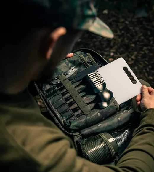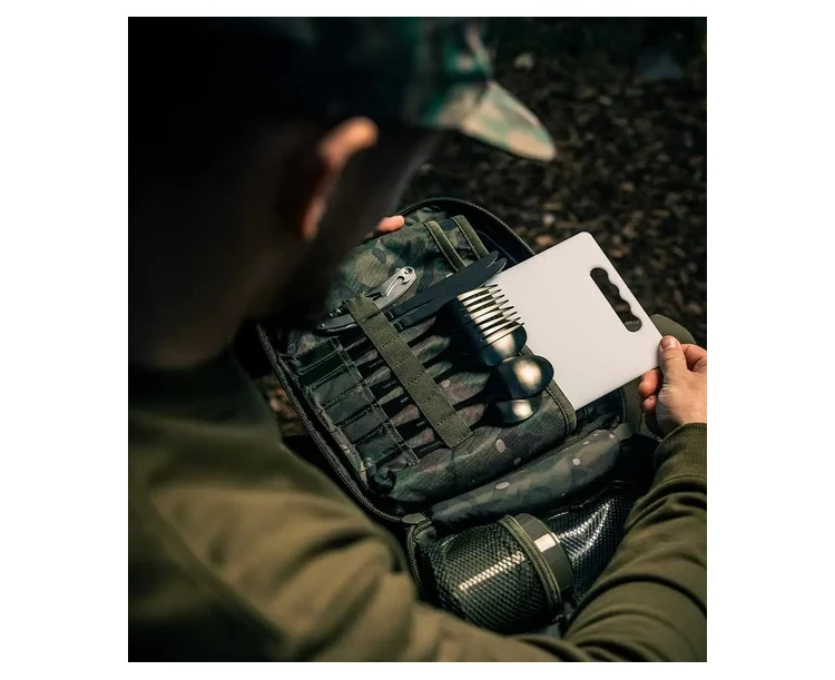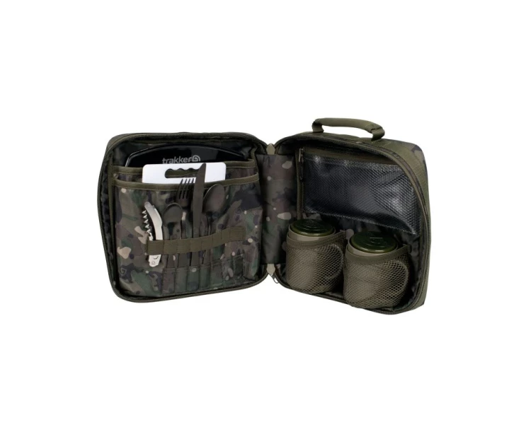 NXC Deluxe Food Set je sada všeho, co potřebujete pro konzumaci jídla nebo nápojů v úhledně prezentované, polstrované camo tašce, která je vybavená odolným dvojitým zipem, neoprenovou rukojetí a voděodolnou PVC základnou.