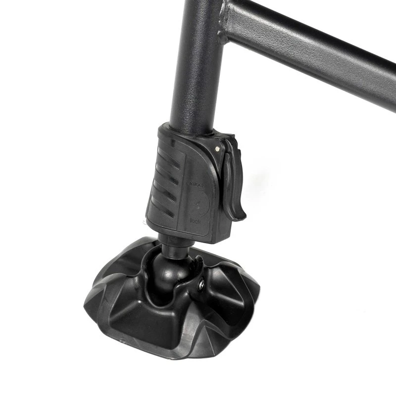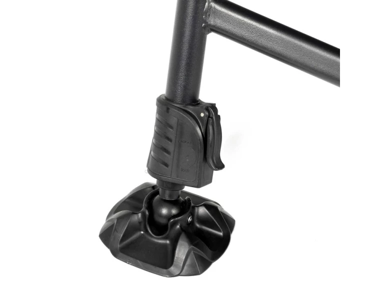 Má plně nastavitelných 6 nohou s otočnými patkami pro rovnoměrné rozložení zátěže, silný rám s úplně plochým profilem a vodováhou pro dokonalé vyrovnání i na nerovných svazích.