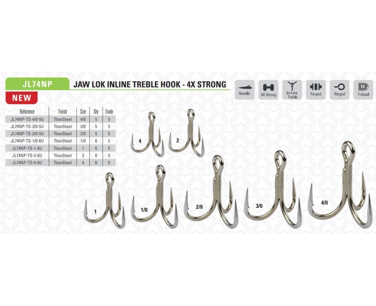 Nové trojháčky Jaw Lok od Mustad se vyznačují plně kovaným designem hybridního tvaru pro maximalizaci úspěšnosti záseku. Tento speciální design uzamkne háček v tlamě ryby na místě a zajištujě sílu pro tyto těžké souboje i s největšími rybami. Nejlehčí háčky ve své třídě, nové trojháčky Mustad přesvědčí konzistentní a osvědčenou konstrukcí. Tyto precizně vyvážené trojháčky jsou konstruovány se třemi samostatnými háky pomocí nejnovější technologie samosvařování společnosti Mustad. Aby toho nebylo málo, tyto háčky jsou zdokonaleny technologií UltraPoint® pro extrémní ostrost a odolnost pro prodlouženou životnost háčku. Skvělý trojháček pro použití ve sladké i slané vodě.