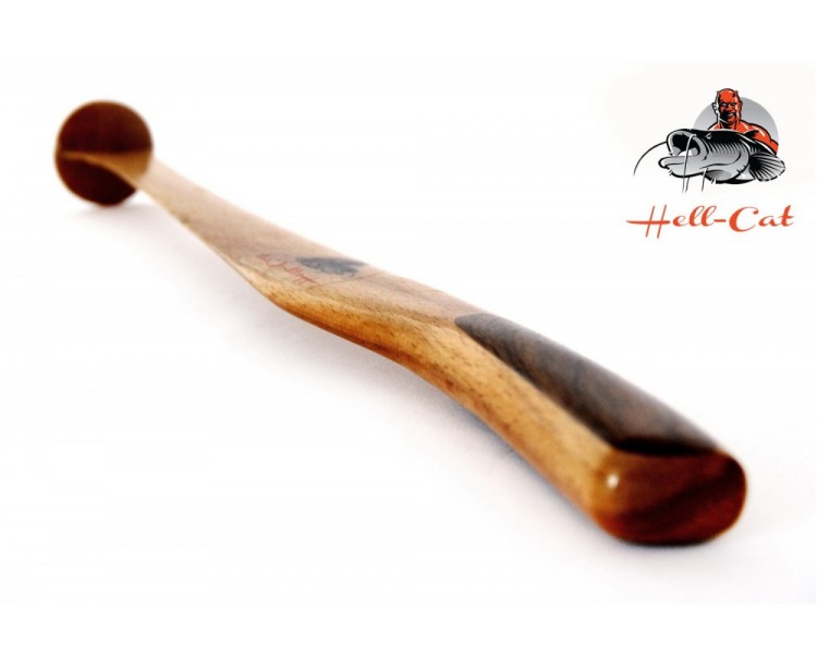 Takto vysušené dřevo zajišťuje perfektní tvar a pružnost těchto vábniček. Na povrchovou úpravu se používá několik vrstev laku. První vrstva je impregnační lak, který vsaje do hloubky dřeva. Další tři vrstvy laku se nanesou na vábničky a chrání dlouhou dobu dřevo před poškozením. Ruční výroba zajišťuje nepřetržitou kontrolu kvality při jejich výrobě až po finální ukončení výrobků. Technologie a zpracování zabezpečuje kvalitu a jedinečný originál, který držíte v rukou. V sérii vábniček Hell-Cat je několik druhů vábniček, které mají své vlastnosti. Vábnička : Plochá velká speciál Plochá velká II Plochá malá I Plochá půlkulatá velká II Plochá půlkulatá malá I Každá vábnička má své vlastnosti a jde použít na všechny hloubky. Velké ploché, speciální a půlkulaté vábničky se používají spíše do větších hloubek, protože zvuk, které tyto vábničky vytvářejí je silný a zvedají sumce i z velkých hloubek. Malá plochá a půlkulatá vábnička se naopak používají do menších hloubek, kde svým jemným zvukem vyprovokuje sumce k útoku. Údržba vábniček : Vábničky nenechávejte v žádném případě ve vlhkém prostředí. Po ukončení lovu s vábničkou nechce vábničku dobře vysušit, otřete suchou osuškou a dejte do pouzdra, které Vám bude chránit vábničku před poškozením.