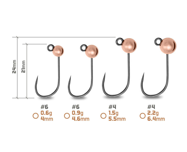V naší nabídce naleznete různé průměry hlaviček, ze kterých si vyberete tu správnou možnost pro danou hloubku revíru a proudivost vody. Různé velikosti háčku umožňují nastražování různých druhů a velikostí umělých nástrah.