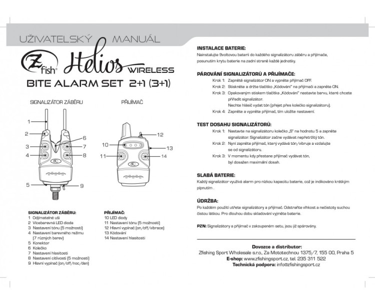 Nadčasový design, vysoká kvalita, maximální výbava, dlouhá životnost a špičkové zpracování. To je základní charakteristika modelu Helios, nejvyšší řady hlásičů od české značky Zfish. U hlásičů lze klasicky regulovat hlasitost, tón a citlivost. Navíc je možné vybírat až ze 7 různých barevných diod. Při nočním chytání se můžete spolehnout na modrou poziční diodu. Tyto hlásiče záběru jsou vybaveny odjímatelnými záchytnými chrániči pro ochranu vašich prutů proti vypadnutí. Voděodolnost je samozřejmostí.