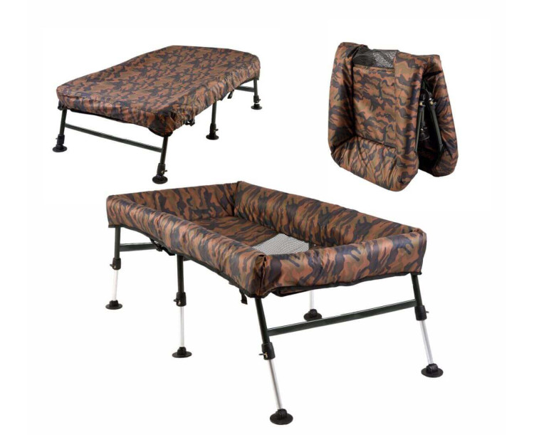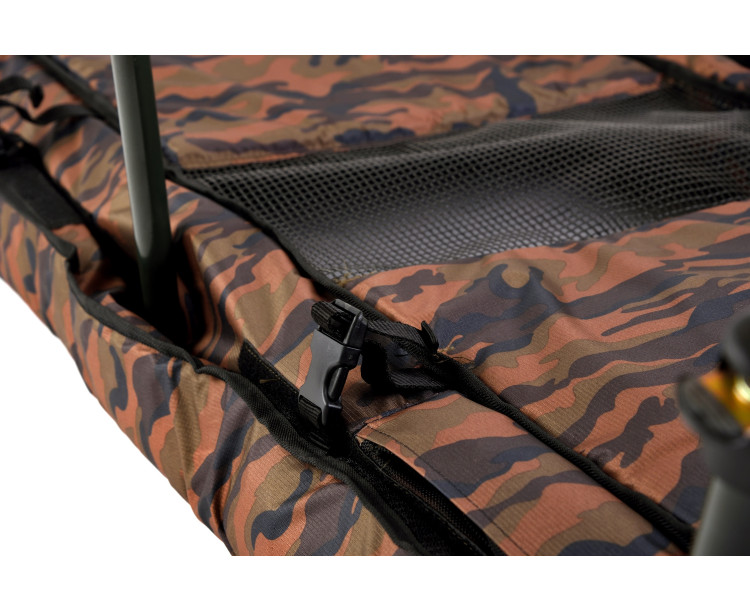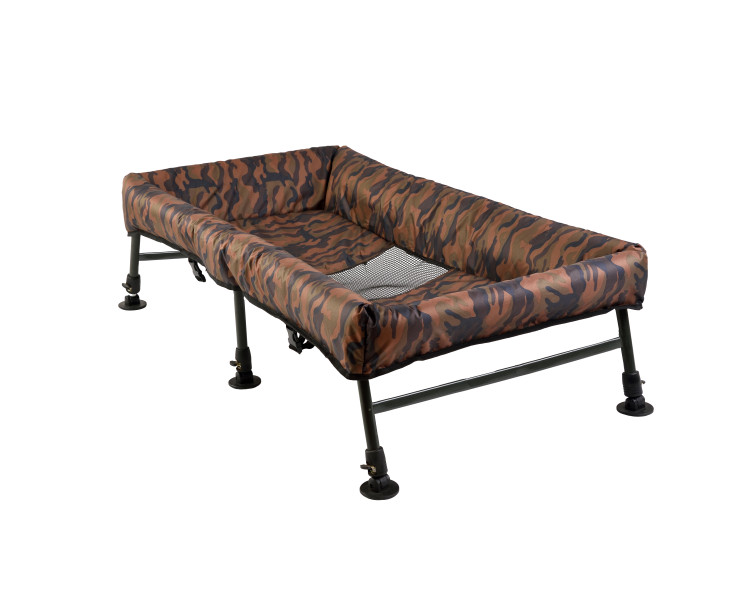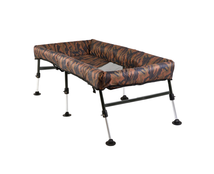 ZFISH představuje nový vylepšený model vaničky pod opravdu velké kapry a amury jak jinak než v oblíbeném Camo vzoru. Tato podložka spolehlivě zajistí ochranu a pohodlí ryby v každém terénu díky 6-ti snadno nastavitelným nohám. Základní rám této vaničky je velmi pevný a robustní a samotný vnitřek včetně boků vaničky je měkký a bohatě polstrovaný pro maximální ochranu a pohodlí opravdu velkých úlovků. Součástí podložky je samozřejmě i přehoz, který slouží k přikrytí a zklidnění ryb. Dno je ve středu vaničky opatřeno pogumovanou síťkou, která zajišťuje jednoduchý odtok přebytečné vody, rybu nepoškodí a nenatáhne zápach stejně tak jako použité textilie a materiály, které jsou snadno omyvatelné. S touto vaničkou budete připraveni raz dva, protože její přeprava, rozložení, nastavení a zpětné složení je opravdu hračka a zvládne to každý jak se říká s prtem v nose.