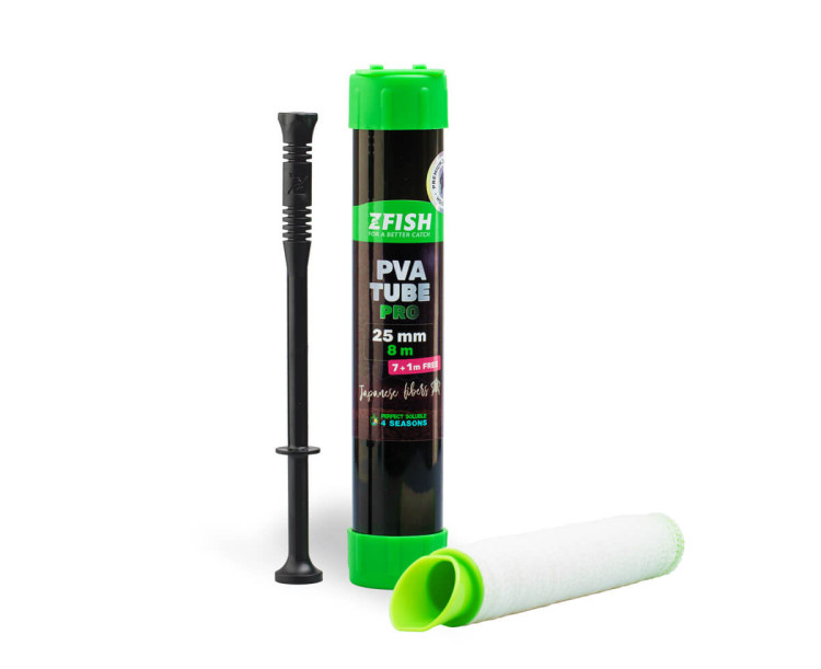 PVA punčocha ZFISH vyrobena z kvalitního japonského materiálu. Nabízí 100% rozpustnost a velkou pevnost vláken. Díky zvýšené hustotě výpletu je velmi odolná a udrží vaši návnadu na místě i při tom nejsilnějším náhozu. Odhadovaná doba rozpustnosti je přibližně 25-50 sekund, přičemž rozpustnost závisí na teplotě vody. Punčocha je dodávána včetně praktického tubusu s nakládacím trychtýřem a pěchovadlem pro snadnou a efektivní přípravu krmících punčoch.