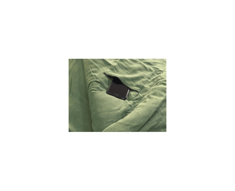 Spací pytel Hoogan 5 season je dalším přírůstkem do exkluzivní camo edice prvotřídních produktů od značky Zfish. Jako vnitřní materiál je použitý velmi oblíbený, příjemný a zároveň hřejivý, zelený mikrofleece. Thermoizolační náplň je tvořena dutými vlákny pro perfektní tepelnou izolaci. Triumfem v rukávu spacího pytle je vnější materiál Quattro-tex®, v aktraktivním camo provedení, který doplňuje izolační vlastnosti o neméně důležitou ochranu proti vlhkosti. Quattro-tex® materiál nepouští vlhkost dovnitř, ale naopak je prodyšný zevnitř směrem ven. Díky této vlastnosti je zajištěný odvod par, které se při spánku z těla uvolňují. Složení všech použitých materiálů tedy zajišťuje luxus při spaní v přírodě ve všech ročních obdobích. Praktické a velké zipy spacáku jsou po obou stranách a lze je rozepnout až k nohám. Ve vnitřní části spacího pytle se nachází kapsa na zip, která je vhodná pro mobilní telefon nebo doklady. Pod hlavou je na zip odnímatelný, pohodlný polštář. Ve střední části spacího pytle je stahovací popruh, který se díky přezce snadno upevní k lehátku. Na obou stranách spacího pytle jsou našité návleky, které lze přetáhnou přes vršek a spodek lehátka pro lepší zafixování. Součástí balení je přepravní taška, taktéž v camo provedení.