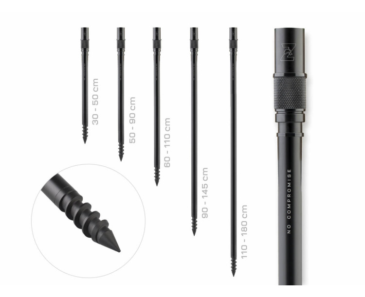 Díky závitovému (vrtacímu) hrotu lze vidličku snadno a pevně ukotvit i v tvrdé nebo kamenité půdě – bez nutnosti použití velké síly či nářadí. Výškově nastavitelná konstrukce umožňuje přesné nastavení prutu podle terénu i aktuálních podmínek lovu.